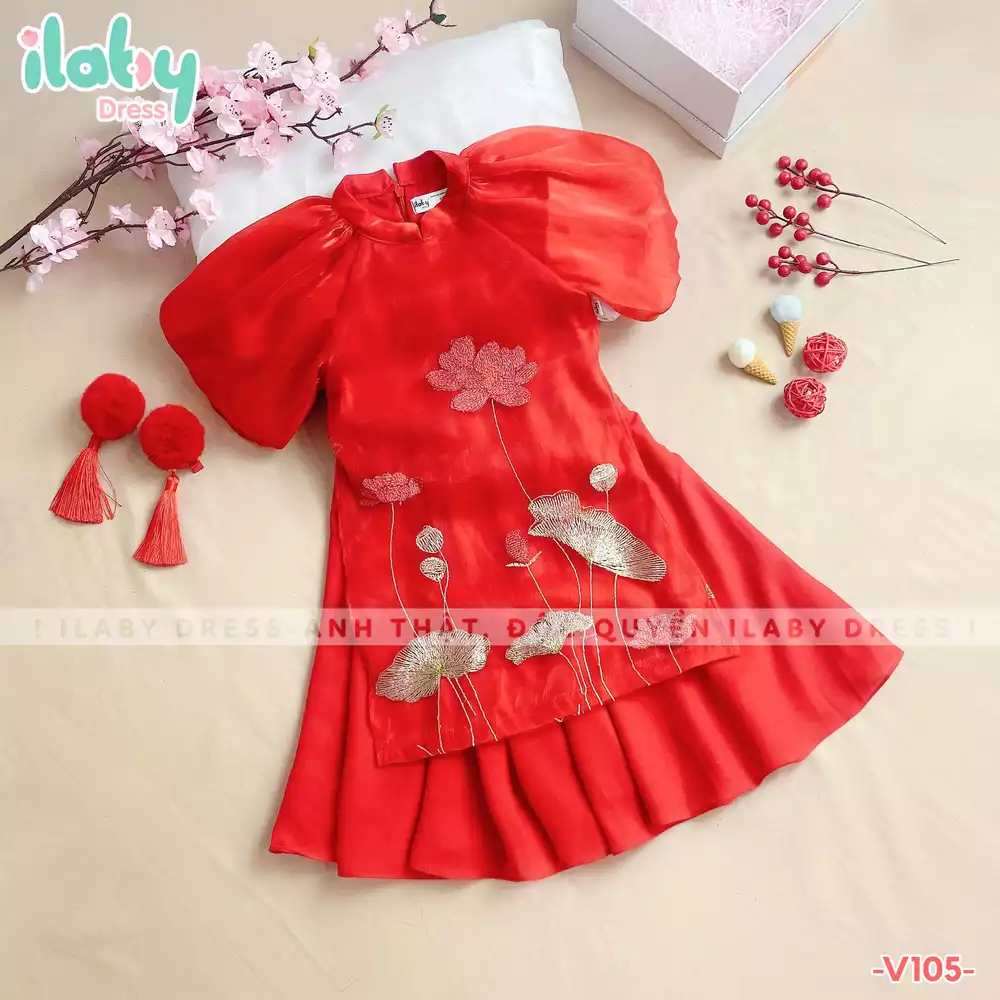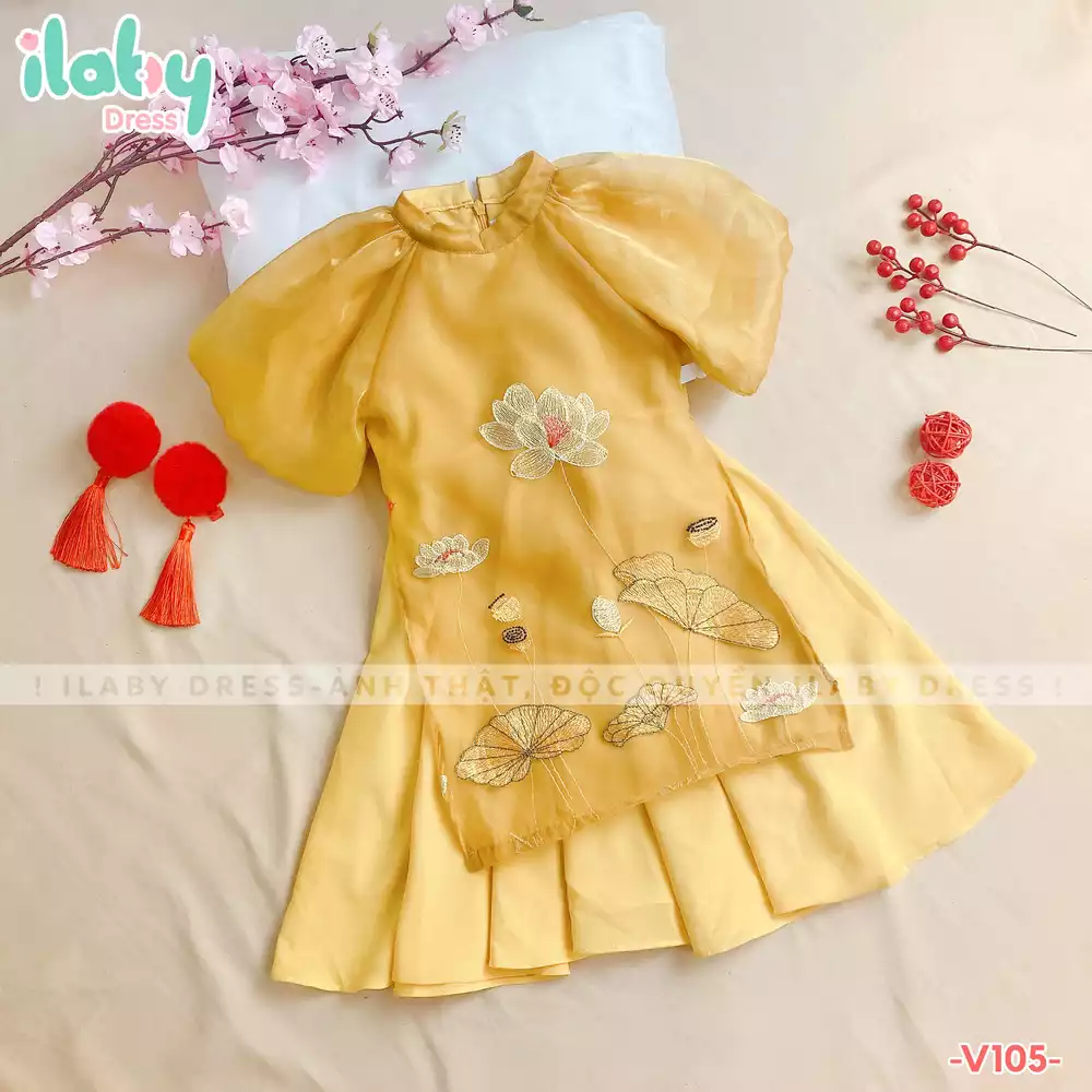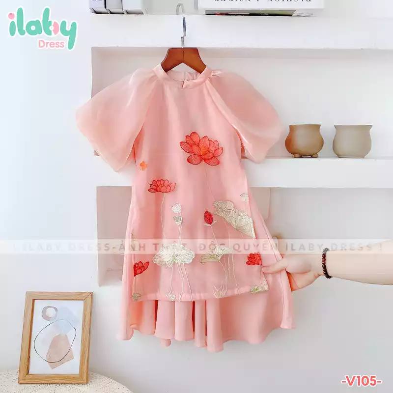 Áo dài thêu hoa sen