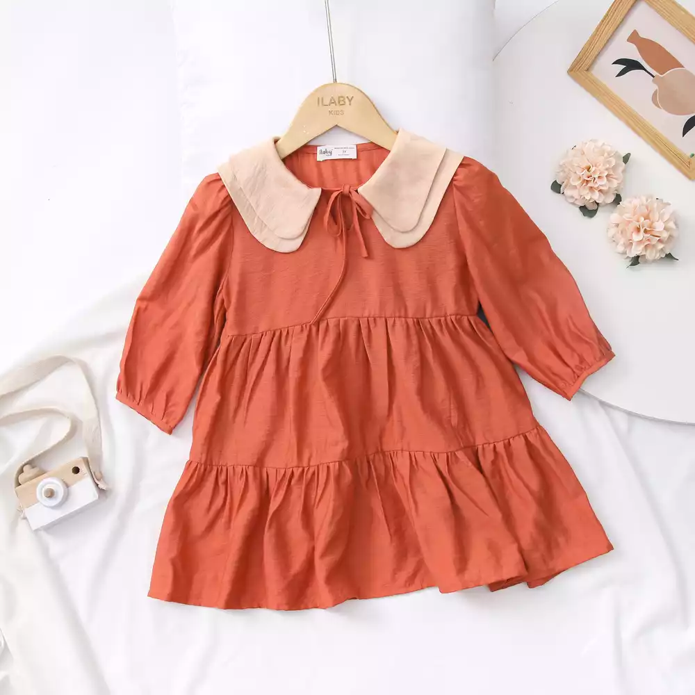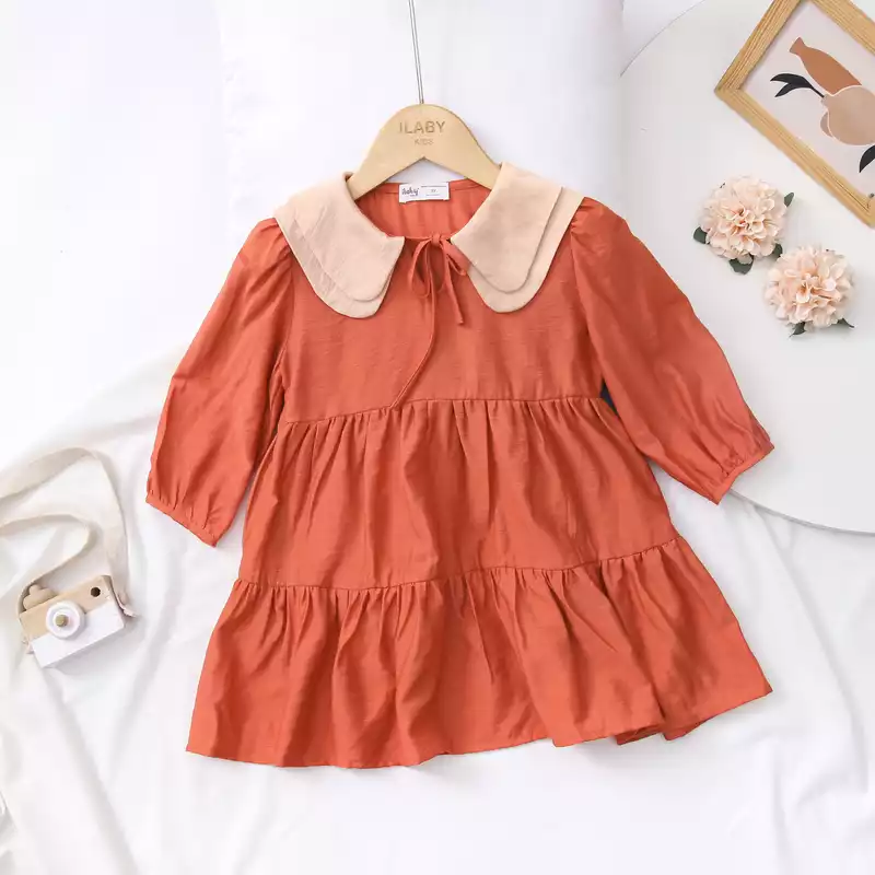 Váy cam phối 2 lá cổ