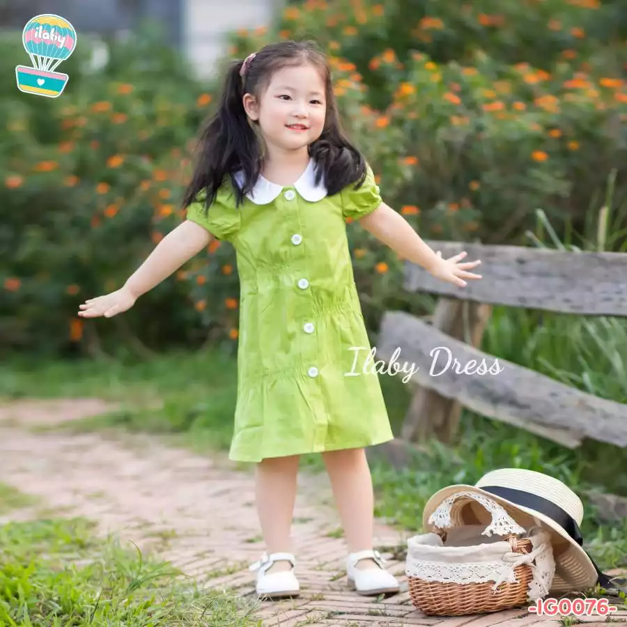Váy cổ sen phối chun nhún