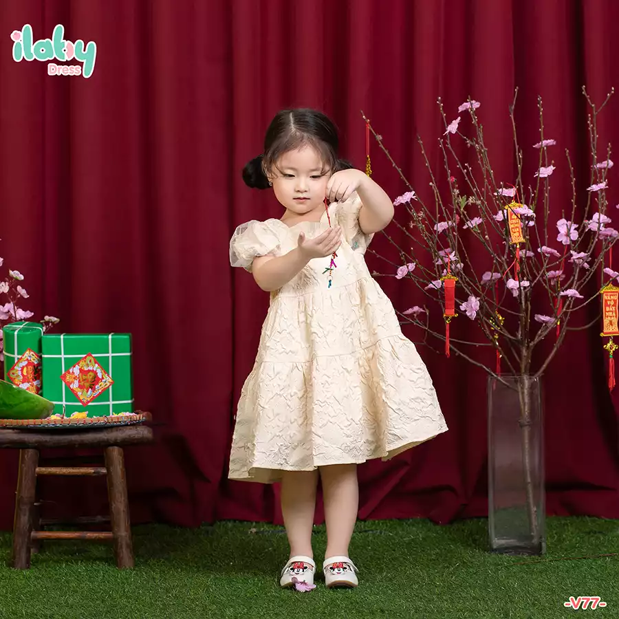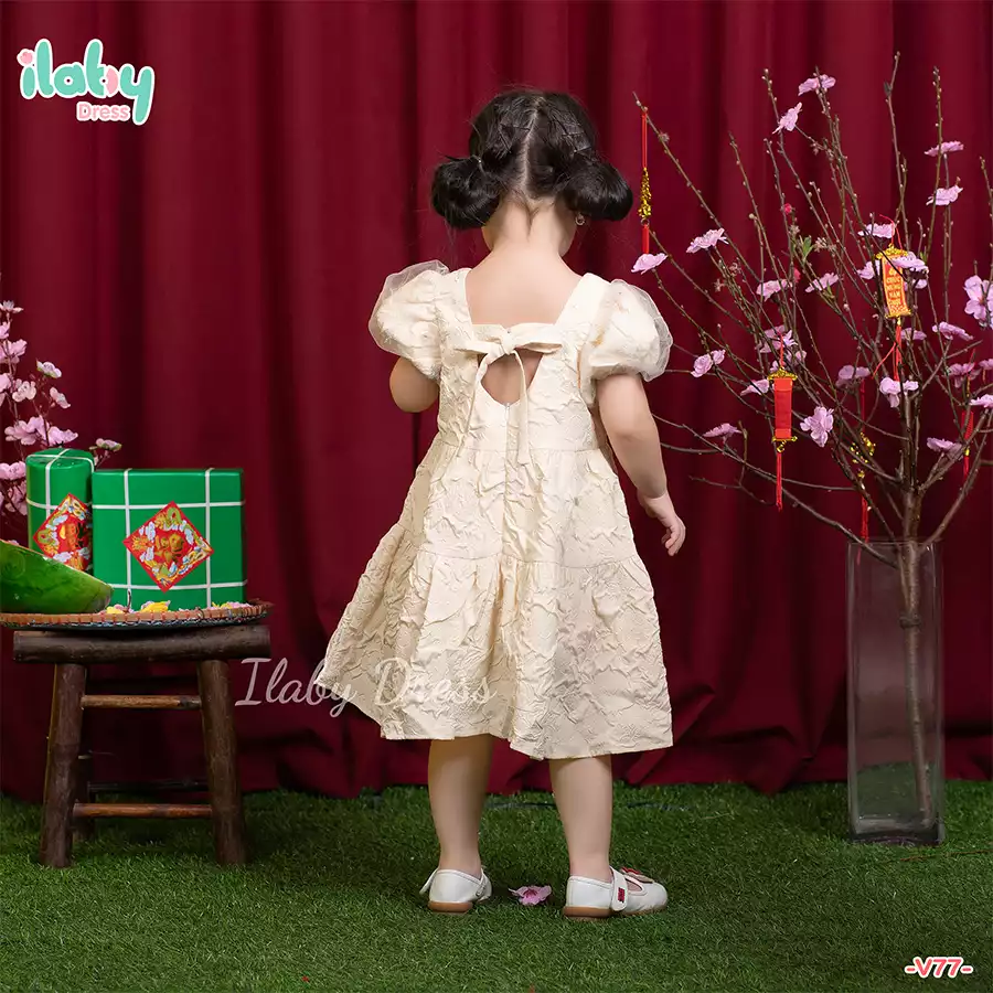 Váy gấm tay voan