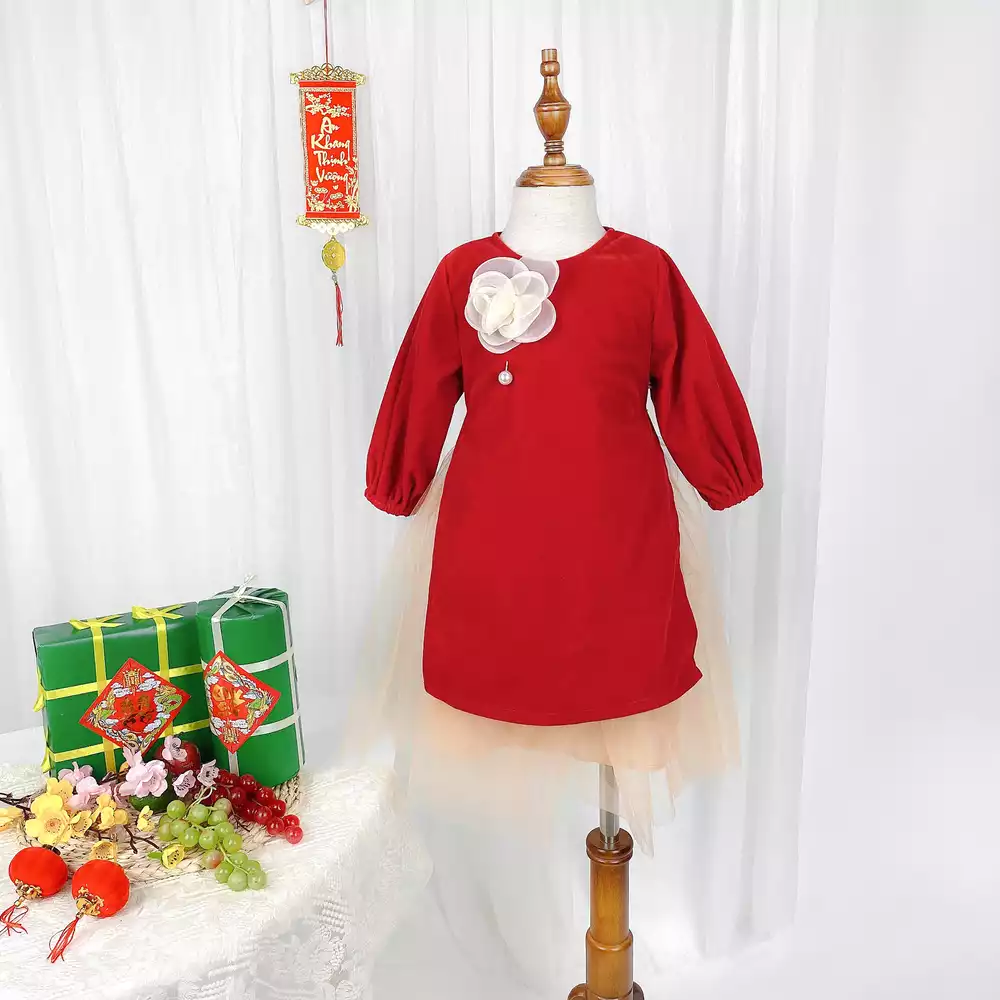 Váy nhung cài hoa kèm chân tutu
