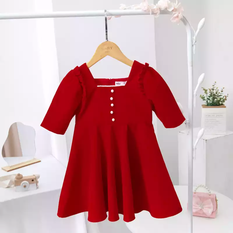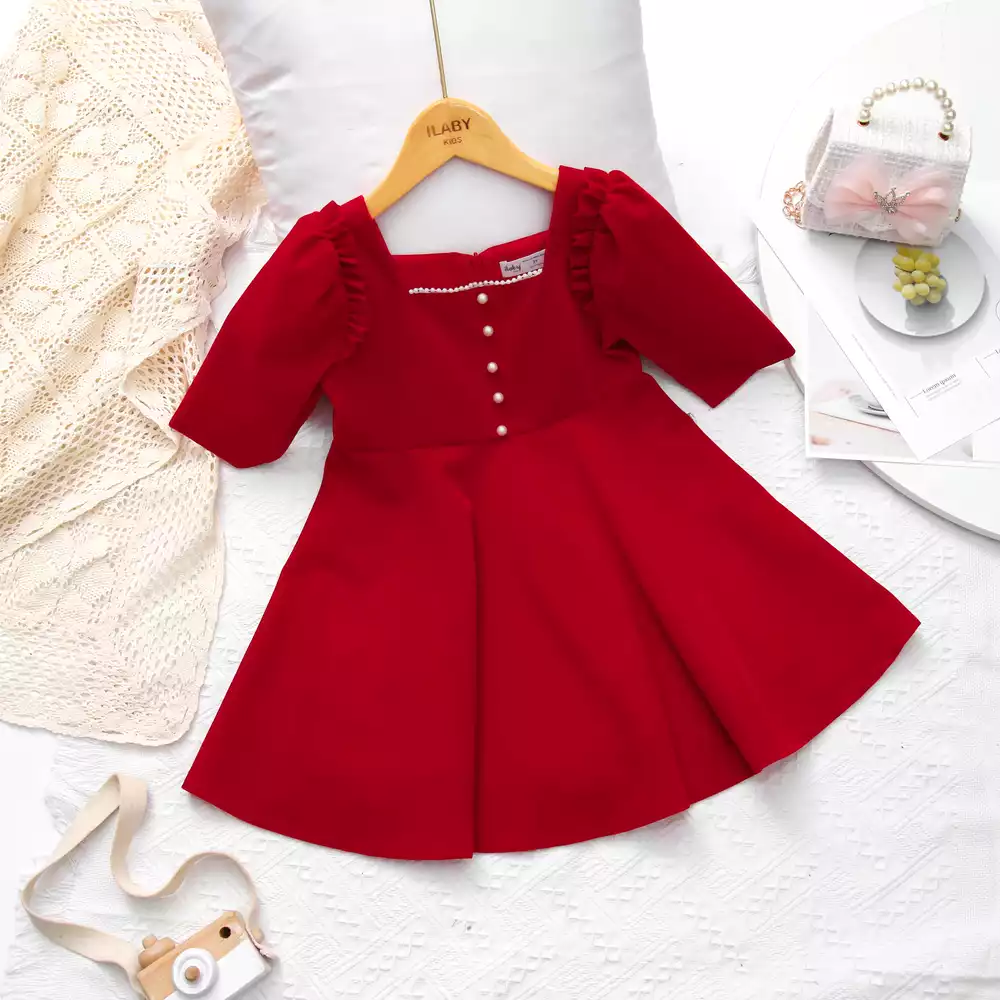 Váy nhung cổ vuông đính ngọc